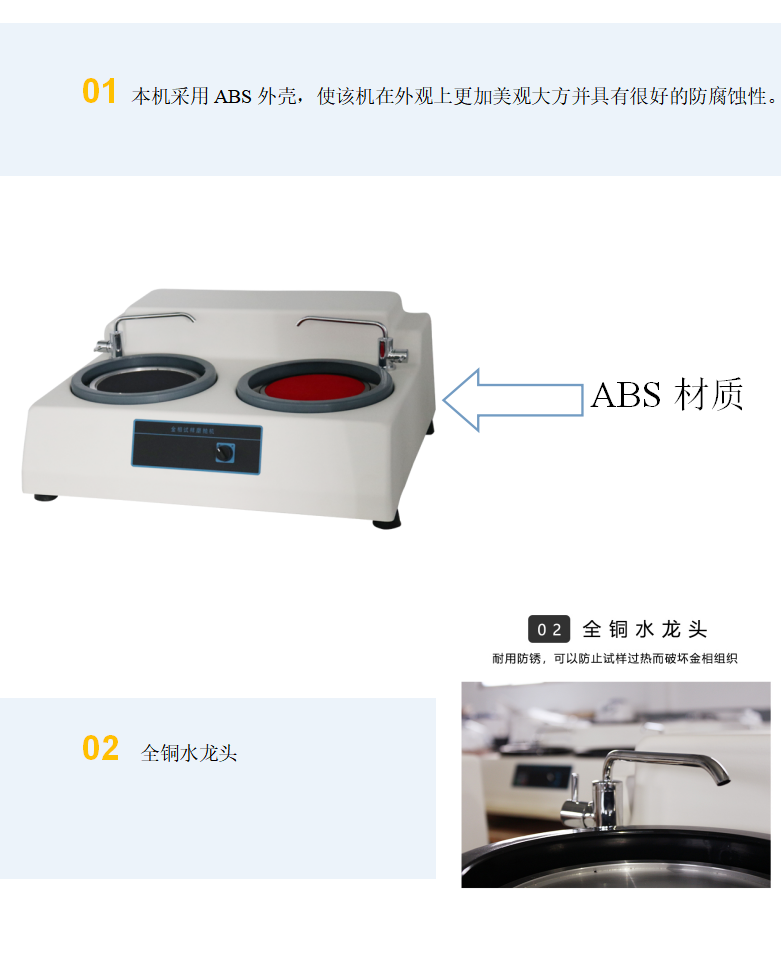適用于對(duì)金相試樣進(jìn)行預(yù)磨、研磨和拋光操作??蓛扇送瑫r(shí)操作使用,使用方便、穩(wěn)定可靠。是用戶用來(lái)制作金相試樣必不可少的設(shè)備。