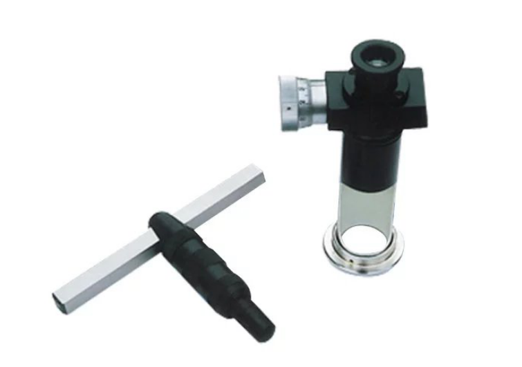 儀器主要由支架、條形硬度塊、鋼球和讀數(shù)顯微鏡組成,試驗(yàn)時(shí)用錘子敲擊支架頂部,鋼球會(huì)同時(shí)壓入試樣和硬度塊中,在試樣和硬度塊上留下壓痕,兩個(gè)壓痕具有一定的比例關(guān)系,分別測(cè)出兩個(gè)壓痕直徑,查表,就可得到試樣的布氏硬度值。