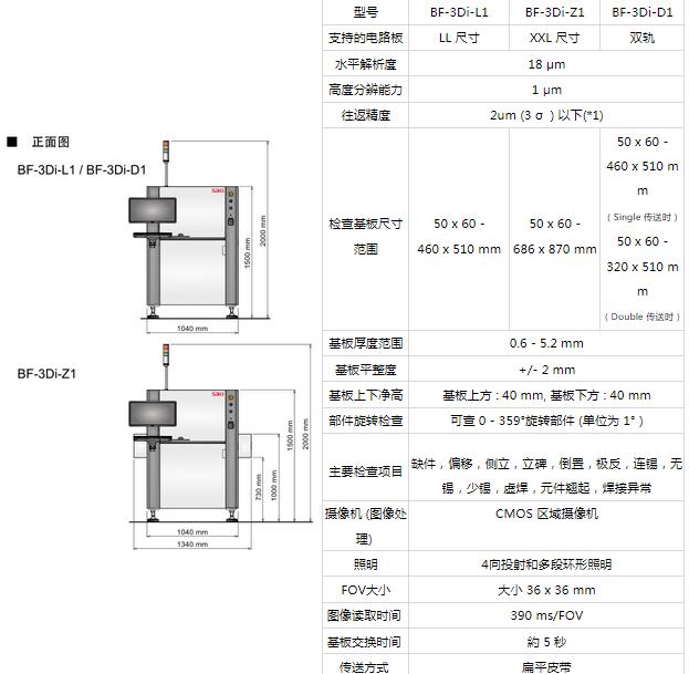 SAKI在線在線AOI自動(dòng)光學(xué)檢測(cè)儀BF-3Di參數(shù)簡(jiǎn)介: