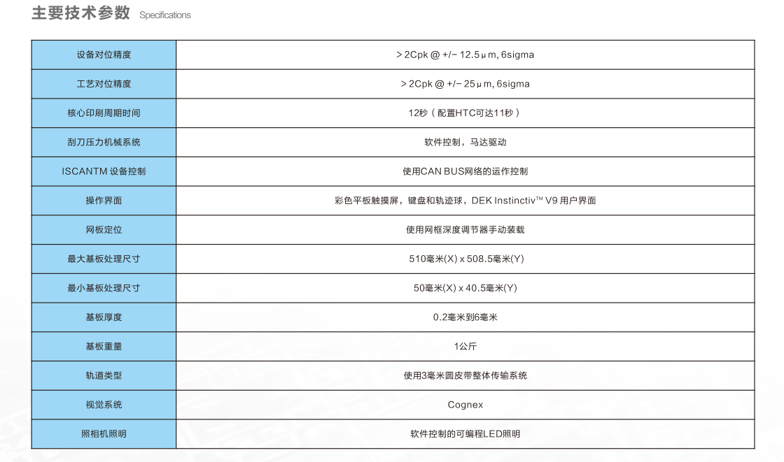 DEK Horizon 03iX印刷機(jī):DEK Horizon 03iX特點(diǎn):.先進(jìn)的上視/下視視覺系統(tǒng).獨(dú)立控制與調(diào)節(jié)的照明.高速度移動(dòng)的鏡頭.高精度伺服馬達(dá)驅(qū)動(dòng)及PC控制.自動(dòng)、無輔助的網(wǎng)板底面清潔功