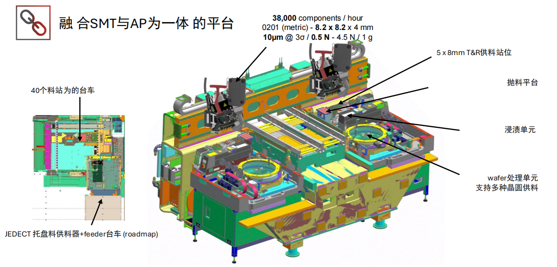 直接在一臺(tái)機(jī)器中從晶圓和 SMT 貼裝中實(shí)現(xiàn)高速芯片組裝 智能設(shè)備、5G 通信標(biāo)準(zhǔn)、自動(dòng)駕駛:只有持續(xù)的小型化和日益復(fù)雜的電子產(chǎn)品才能使這一切成為可能。這背后的關(guān)鍵技術(shù)是系統(tǒng)級(jí)封裝 (SiP):IC 和 SMT 組件組合成一個(gè)緊湊、高度創(chuàng)新的系統(tǒng)。