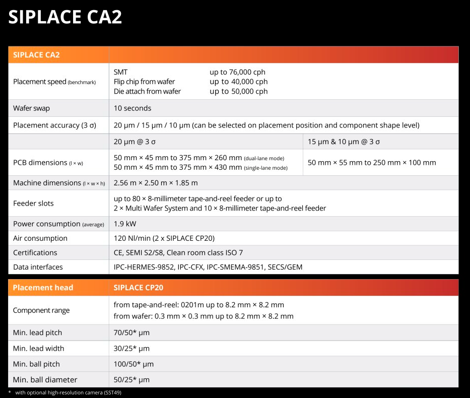 SIPLACE CA2 高速芯片組裝機(jī),SiP先進(jìn)封裝技術(shù)設(shè)備,SIPLACE CA2混合型設(shè)備參數(shù)