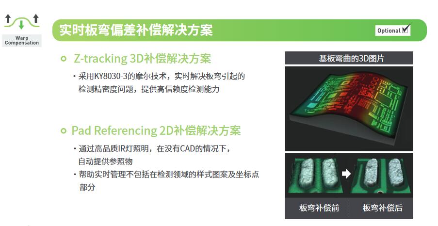 - 提供帶實時 PCB變形補償?shù)木_檢測數(shù)據(jù)